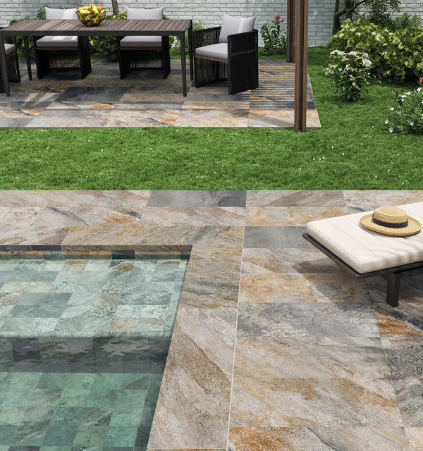 50 % плитки состоит из переработанных материалов, производственные процессы минимизируют отходы и потребление воды.