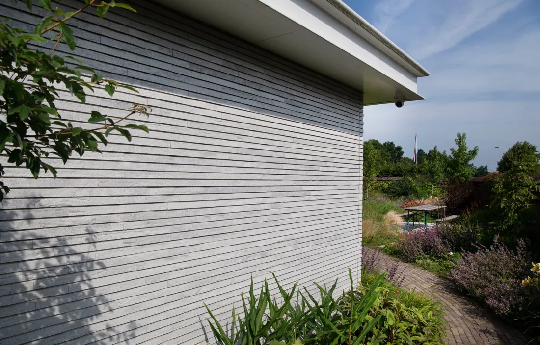 GeoStylistix - коллекция длинноформатного кирпича из камня и бетона. Это невероятно прочный и выносливый стройматериал, которому все нипочем. Ни дождь, ни солнечные лучи, ни снег. Имеет высокий уровень звукоизоляции, при этом не нагружает стену лишним весом.