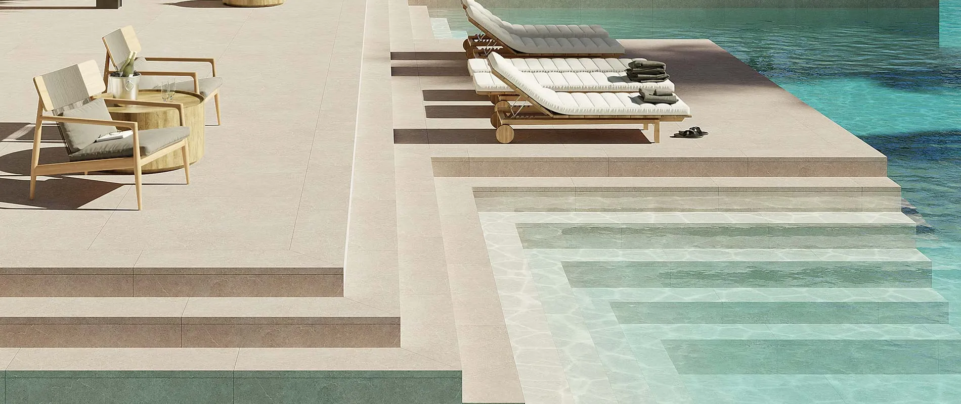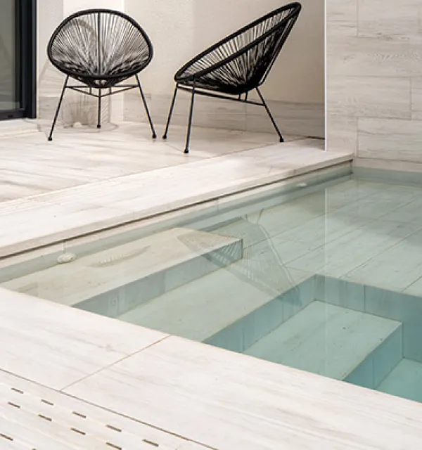 Виробництво щаблів для басейнів Cerámica Mayor поєднує традиції керамічного мистецтва з сучасними технологіями, пропонуючи керамогранітні сходи, підсходи, торцеві заглушки, плінтуси та прямі плінтуси. Кожен елемент створений для забезпечення естетичної цілісності, високої міцності та безпеки у будь-яких умовах, включаючи зони навколо басейнів.
